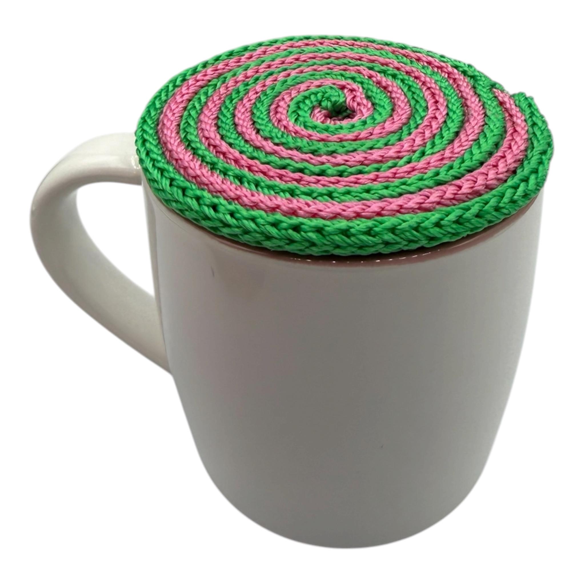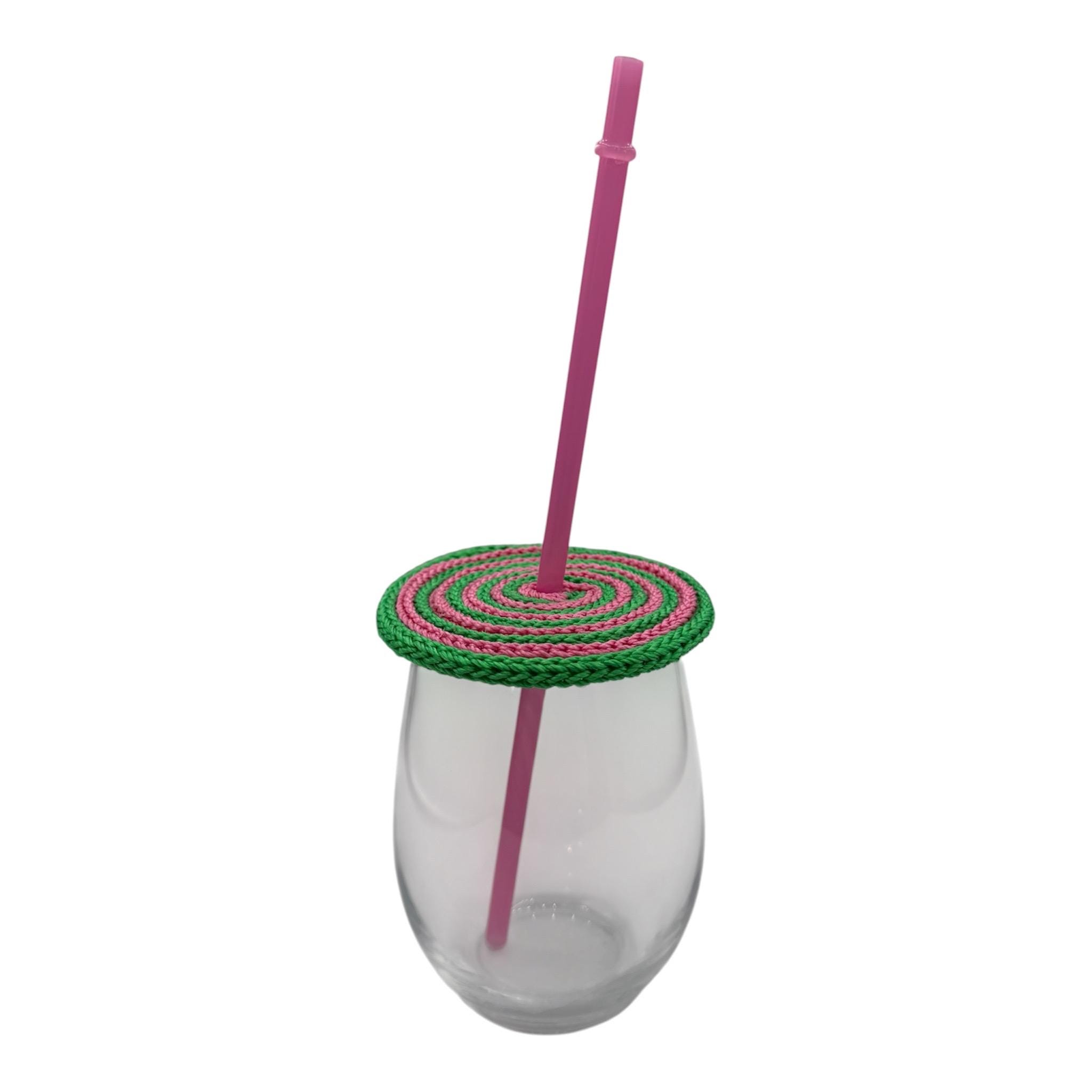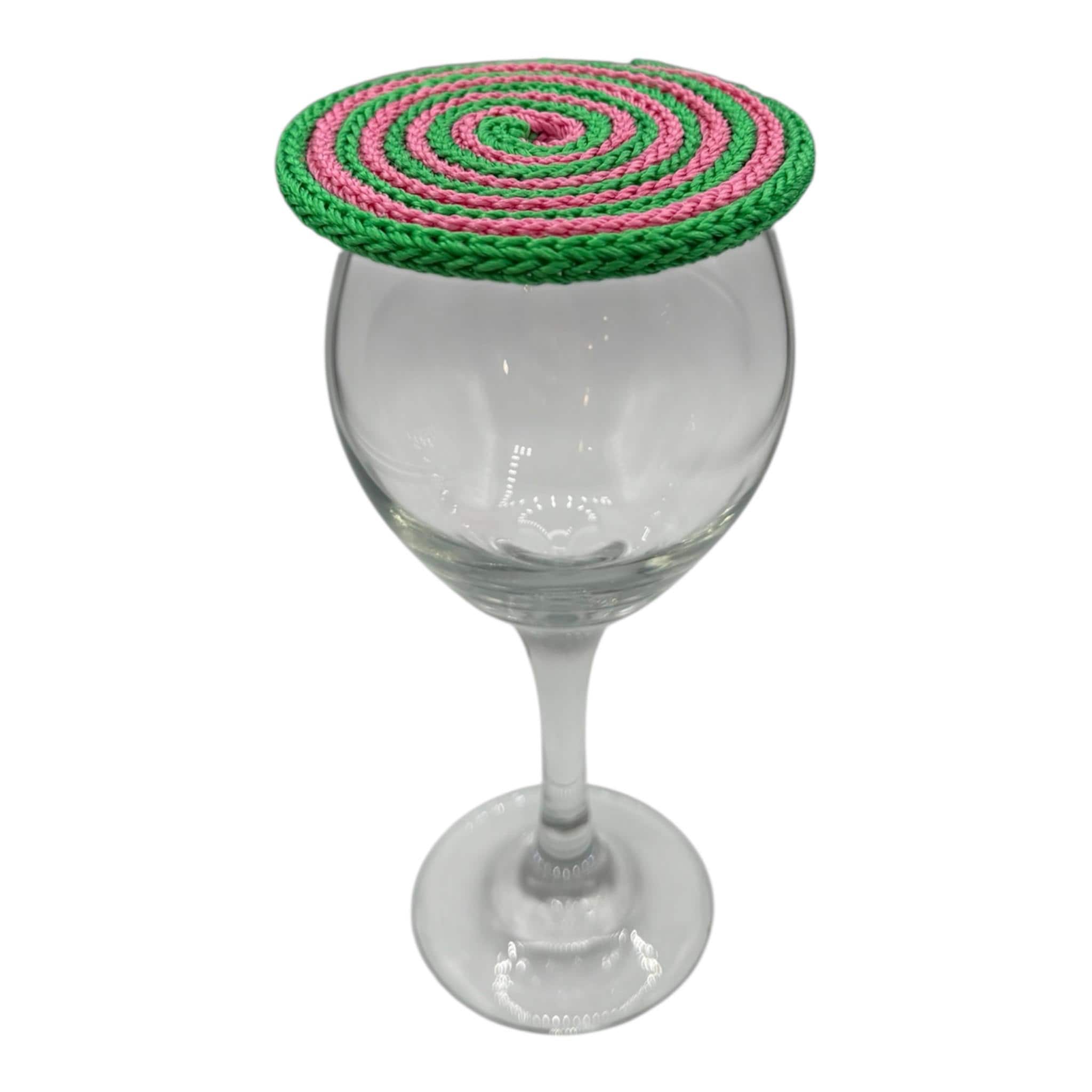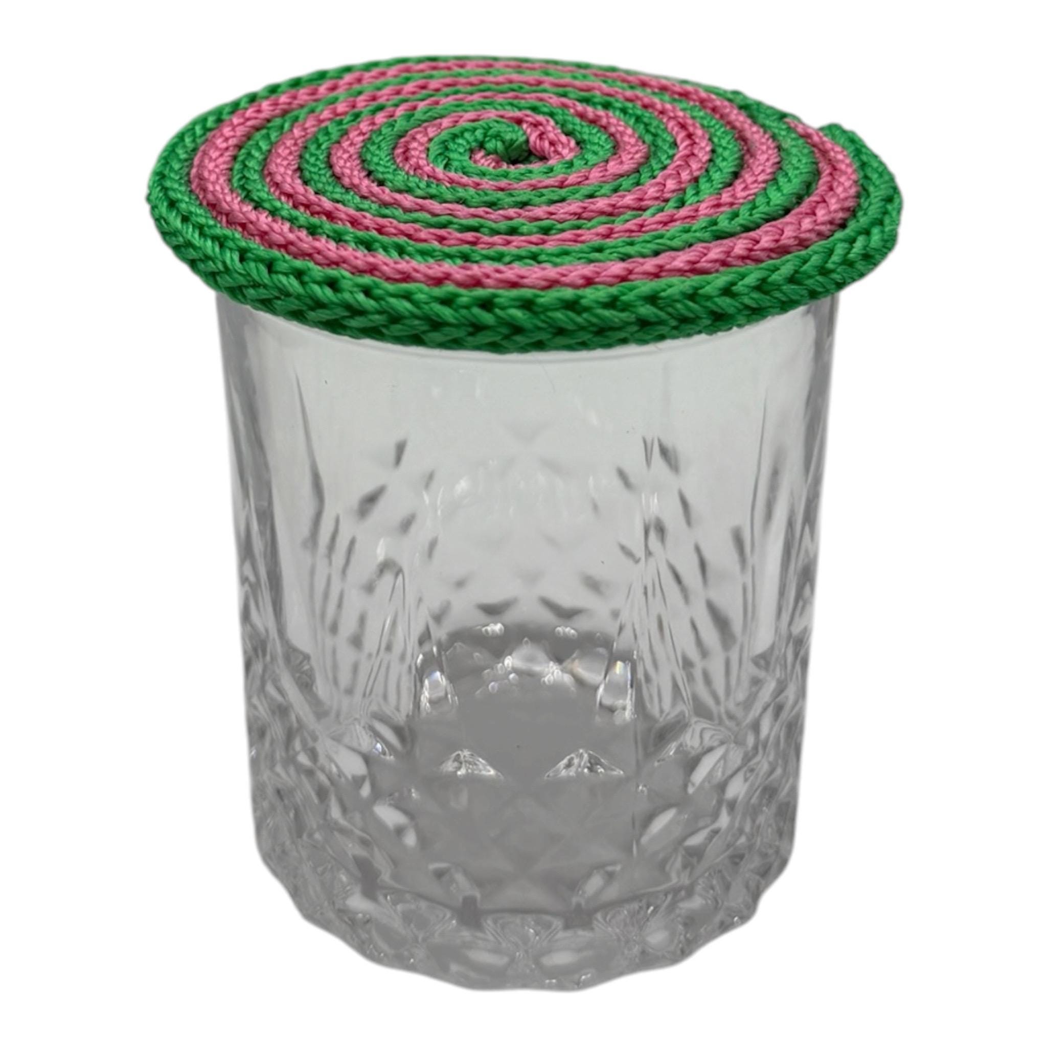 Pink/Green Swirl - Hand Knitted Drink Cover • Reusable Glass Topper • Outdoor Bug Protector • Summer Picnic Accessory • Cup Cover for Drinks